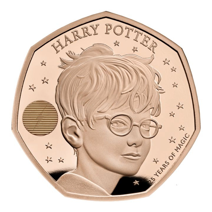 Il rovescio della moneta raffigura Harry Potter e la scritta “25 YEARS OF MAGIC”. Il rovescio è stato disegnato da Ffion Gwillim.