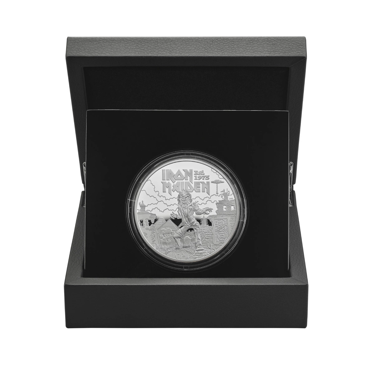 La moneta d'oro da collezione Iron Maiden 5 oz Silver 2025 Proof è un tributo unico al 50° anniversario di una delle band più iconiche della storia della musica: gli Iron Maiden. Coniata in argento Ag.999, in edizione limitata, questa moneta rappresenta un'opportunità unica per i fan dell'heavy metal, i collezionisti e gli investitori in metalli preziosi. È anche la prima moneta ufficiale del Regno Unito con gli Iron Maiden, la leggendaria band che ha segnato la storia del rock e del metal. Il rovescio è stato disegnato da Alberto “Akirant” Quirantes, l'artista responsabile di molte illustrazioni classiche associate alla band. La moneta presenta, tra l'altro, l'iconica mascotte della band, Eddi. Il tutto è completato da una confezione moderna e accattivante, che presenta la storia della band dal suo debutto nel 1975 a oggi. Inoltre, sia il design che l'artwork della moneta contengono simboli nascosti e riferimenti agli album e ai tour più importanti della band.Il dritto mostra l'immagine del monarca del Regno Unito insieme alle iscrizioni reali, al taglio e all'anno di emissione. Il design classico ed elegante del dritto è in linea con gli standard delle prestigiose emissioni da collezione.Rewers è una sorprendente illustrazione di Alberto ‘Akirant’ Quirantes, che raffigura Eddie - l'iconica mascotte degli Iron Maiden. Il disegno è arricchito dal nome della band “IRON MAIDEN” e dall'iscrizione "EST. 1975". Sullo sfondo sono nascosti dettagli che alludono alla storia della band, che solo i fan più fedeli potranno scoprire.Imballaggio del prodottoCaso Designer