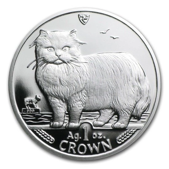 Isola di Man Serie gatti: Gatto persiano 1 oncia d'argento 1989 Proof