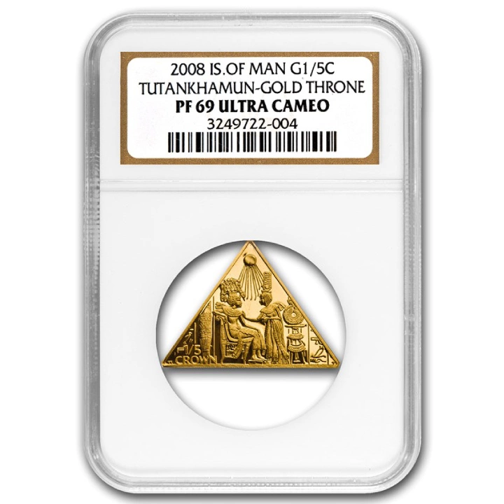 Isola di Man: Tutankhamun - Gold Throne 1/5 oncia d'oro 2008 NGC PF69 Ultra Cameo