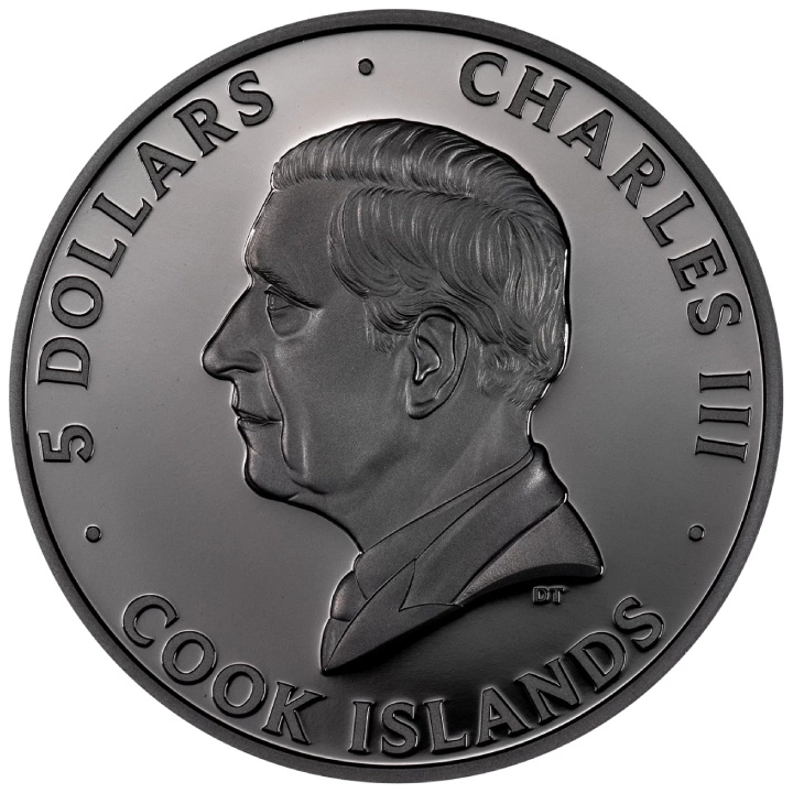 La moneta è stata coniata in argento puro Ag.9999, con un peso di 1 oncia troy e un diametro di 38,61 mm, con finitura nera ossidiana. La tiratura della moneta è di 999 pezzi. Il prodotto è un mezzo di pagamento a tutti gli effetti nelle Isole Cook.