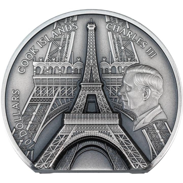 Isole Cook: Torre Eiffel 2 once d'argento 2024 Ultra High Relief Antiqued Coin