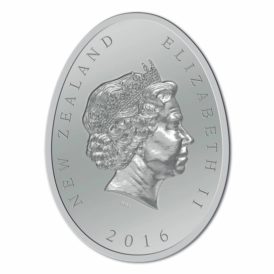 Srebrna moneta Kiwi 2016, która kształtem imituje jajko przedstawia Kiwi plamistego czyli endemiczny gatunek z rodziny kiwi zamieszkujący północną część Wyspy Południowej. Wspomniana moneta została wyprodukowana z czystego srebra próby Ag.999, o wadze jednej uncji trojańskiej oraz wymiarach wynoszących 34mm x 45mm. Jest to moneta, która posiada ściśle limitowany nakład, wynoszący 7 500 sztuk. Co więcej, każda sztuka jest dostarczana w oryginalnej karcie.