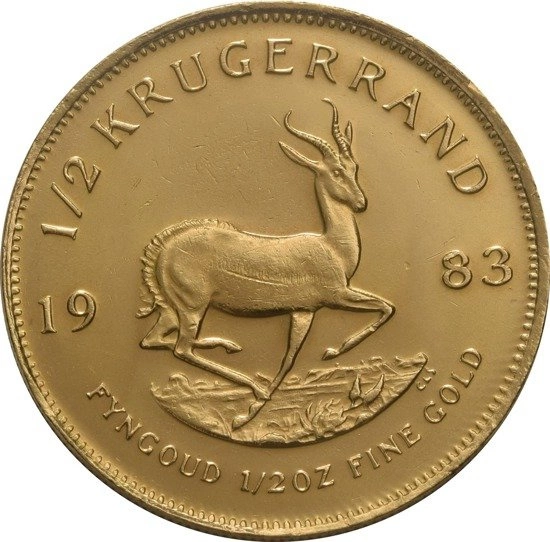 Krugerrand, najbardziej znana i poszukiwana moneta inwestycyjna na świecie. Nazwa tej złotej monety powstała z połączenia słów "Kruger" oraz "rand" - będącego nazwą waluty obowiązującej w RPA. Moneta wybijana nieprzerwanie od 1967 roku. Początkowo produkowana wyłącznie o wadze jednej uncji, jednakże od 1980 roku wprowadzono Krugerrandy o wadze 1/2, 1/4 i 1/10 uncji złota. Moneta bulionowa wybijana ze złota próby 916 z niewielką domieszką miedzi (8,333%), dzięki czemu jest bardziej odporna na zarysowania, a także wyróżnia się nietypową barwą. South African Mint jest oficjalną mennicą Republiki Południowej Afryki, z siedzibą w Centurion, prowincji Gauteng niedaleko Pretorii. Produkuje monety dla South African Reserve Bank, kierowana przez A. M. Mvinjelwa. Awers zdobi portret prezydenta, Paula Krugera, nad nim znajdują się słowa „SUID-AFRIKA” ORAZ „SOUTH AFRICA”. Rewers przedstawia antylopę springbok, symbol Południowej Afryki. Po jej obu stronach znajdują się liczby reprezentujące rok wybicia, a pod spodem widnieje napis „Fyngoud 1oz fine gold”, wskazujący zawartość czystego złota.