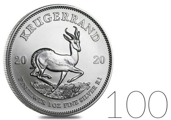 Krugerrand 1 oncia d'argento 2020 PACCHETTO DA 100 PEZZI