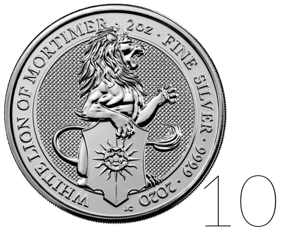 Le bestie della regina: Il leone bianco dei Mortimer 2 once d'argento PACCHETTO DA 10 PEZZI 2020