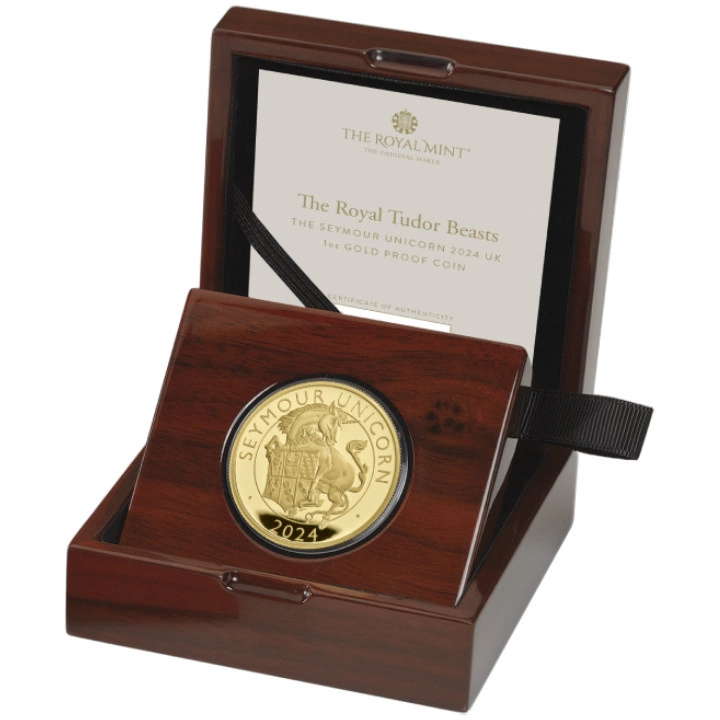 Le bestie reali dei Tudor: l'unicorno di Seymour 1 oncia d'oro 2024 Proof