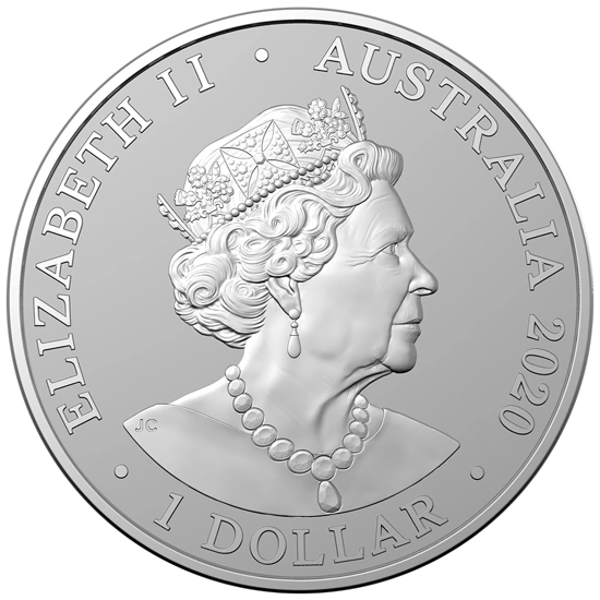 Awers srebrnej monety przedstawia Królową Elżbietę II, projektu Jody’iego Clark’a, wraz z informacją o wartości nominalnej, krajem emitenta oraz rokiem wybicia.