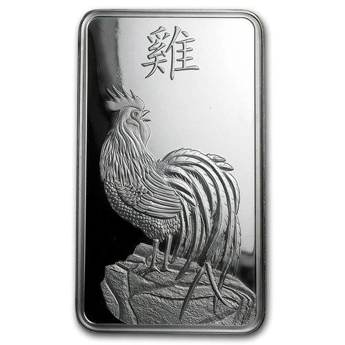 Lingotto d'argento da 100 grammi serie Lunar Anno del Gallo