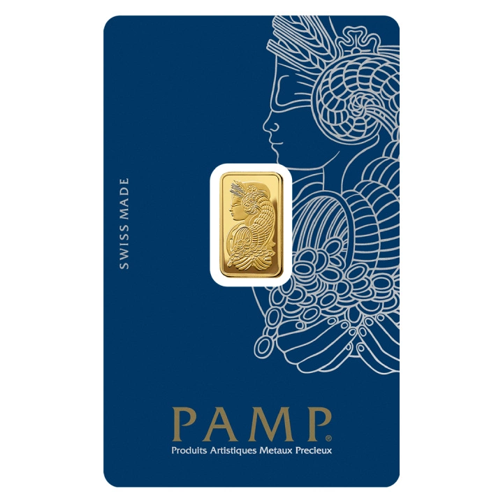 Il lingotto in oro puro titolo 999,9 reca al dritto l’immagine di Lady Fortuna – la dea romana con il corno dell’abbondanza e simboli di prosperità. Il rovescio include il logo PAMP Suisse, le indicazioni di peso, titolo, numero di serie individuale e punzone. PAMP Suisse è una raffineria svizzera con sede in Ticino. È stata la prima a introdurre la decorazione del rovescio dei piccoli lingotti, rendendo Lady Fortuna il motivo più riconoscibile tra i prodotti da investimento. Ogni pezzo è sottoposto a controlli nei laboratori.