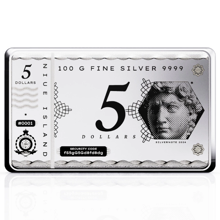 Lingotto Moneta Niue: Silver Note Coinbar 100 grammi d'argento 2024