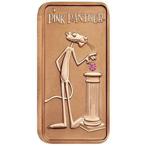 Sul rovescio sono raffigurati una pantera rosa, la scritta “PINK PANTHER” e un diamante rosa.