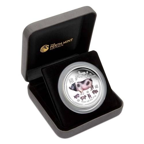 Lunar II: Anno del Maiale colorato 2 once d'argento 2019 Proof (Brisbane Money Expo)