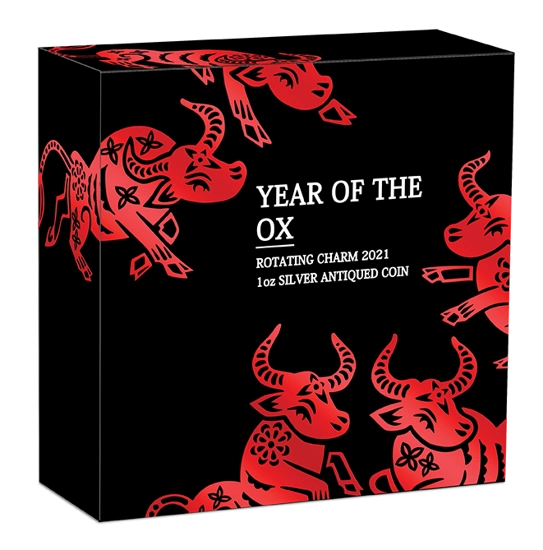 Lunar III: Anno del Bue 1 oncia d'argento 2021 Ciondolo rotante con finitura anticata