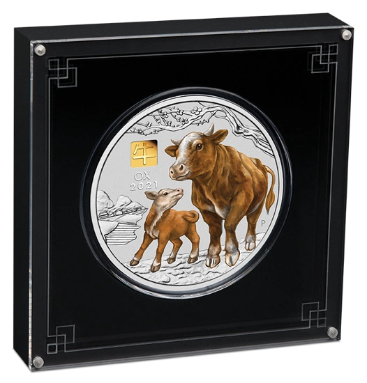 Lunar III: Anno del Bue 1000 grammi d'argento 2021 Gold Privy Mark