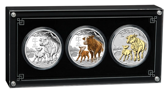Lunar III: Anno del Bue Set 3 once d'argento 2021 Proof