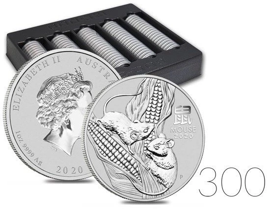 Lunar III: Anno del Topo 1 oncia d'argento PACCHETTO DA 300 PEZZI 2020