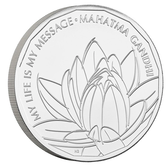 Rewers przedstawia rozkwitający kwiat oraz napis "MY LIFE IS MY MESSAGE", "MAHATMA GANDHI". Projektantką rewersu była Heena Glover.