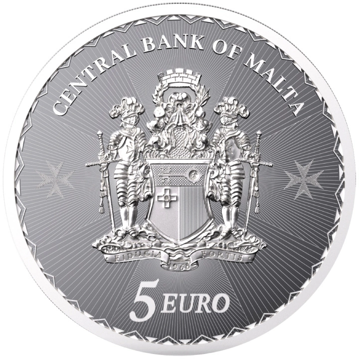 Il rovescio raffigura la Croce di Malta e la scritta “MALTA”. Sul rovescio sono riportati anche il peso, la purezza del metallo e l'anno di conio.