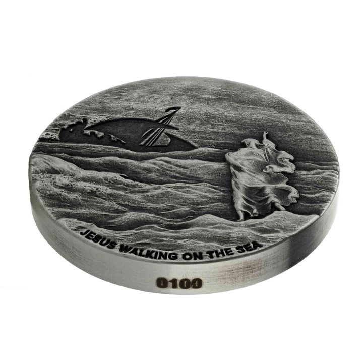Il rovescio raffigura la famosa scena di Gesù che cammina sulle acque.