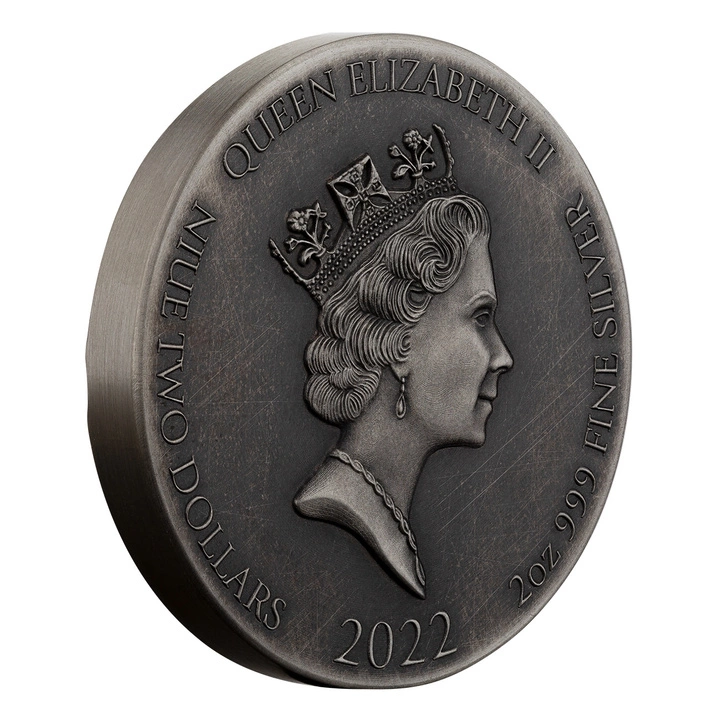 La moneta è stata coniata in argento puro Ag.999, con un peso di 2 once troy, un diametro di 40 mm, in standard proof e antiqued. Il prodotto ha un numero coniato sul bordo della moneta. La moneta d'argento è stata prodotta dalla zecca Scottsdale Mint in una tiratura limitata di 1499 pezzi. Il prodotto è un mezzo di pagamento legale nel territorio di Niue. Il valore ha una confezione originale certificata con certificato di autenticità allegato.