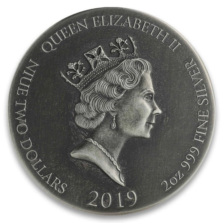 La moneta è stata coniata in argento puro Ag.999, del peso di 2 once troy, con un diametro di 40 mm, in versione proof e antiqued. Il prodotto presenta un numero coniato sul bordo della moneta. La moneta d'argento è stata prodotta dalla zecca Scottsdale Mint in una tiratura limitata di 1499 pezzi. Il prodotto è un mezzo di pagamento legale nel territorio di Niue. Il valore ha una confezione originale certificata con certificato di autenticità allegato.