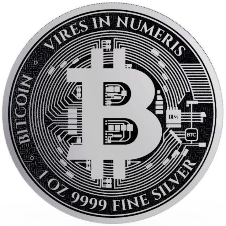 Sul rovescio della moneta sono raffigurati la lettera “B” e le scritte ‘BITCOIN’ e “VIRES IN NUMERIS”. Sul rovescio è riportata anche l'indicazione del peso e della purezza del metallo con cui è stata coniata la moneta.