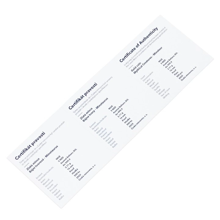 Niue: Creature mitiche - Minotauro $5 Oro 2022 Proof