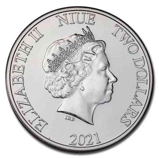 Awers srebrnej monety zdobi podobizna Królowej Elżbiety II oraz informacja o wartości nominalnej i roku bicia monety. Na awersie znajdują się inicjały projektanta - IRB, Iana Rank-Broadleya.