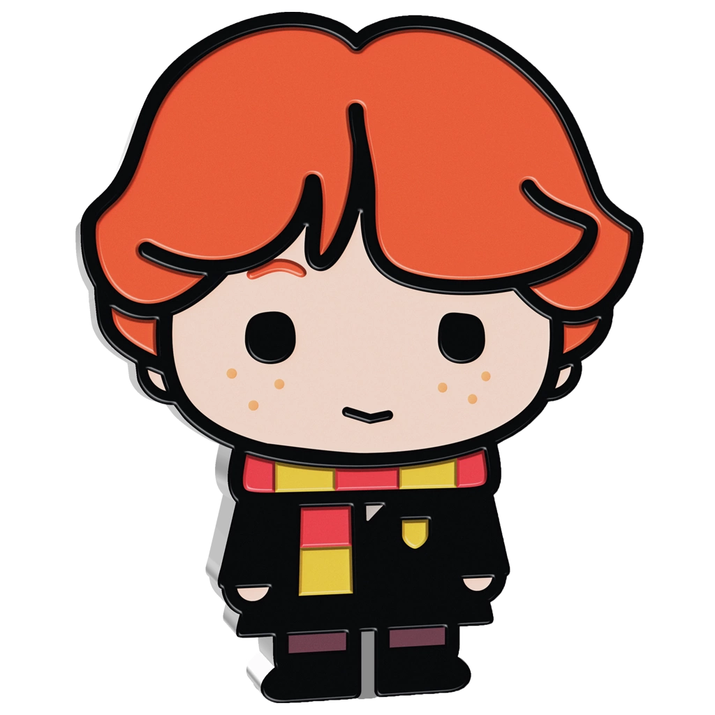 La serie Harry Potter, creata da J.K. Rowling, comprende sette romanzi che raccontano le avventure del giovane mago e dei suoi amici alla Scuola di Magia e Stregoneria di Hogwarts. I romanzi hanno avuto anche un adattamento cinematografico di culto, che ha attirato milioni di fan in tutto il mondo. Il personaggio di Ron Weasley è simbolo di lealtà, coraggio e umorismo, e le sue avventure e il sostegno offerto a Harry e Hermione lo rendono una delle figure più riconoscibili della serie. La moneta Chibi consente a collezionisti e fan della serie di celebrare in modo innovativo questo straordinario personaggio.