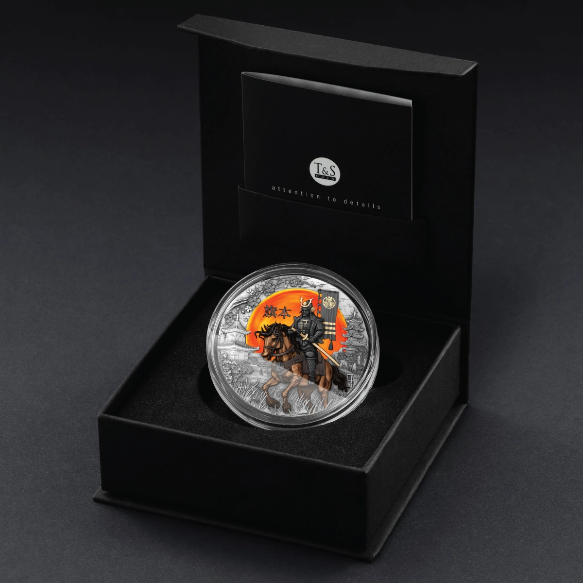 La Niue: Hatamoto Coloured/Gilt 2 oz Silver 2025 Antiqued Coin è la seconda moneta della prestigiosa serie “Warrior's Path”, dedicata al samurai daimyo guardiano Hatamoto. È stata coniata da 2 once di puro argento fino, in qualità anticata con placcatura e colorazione in oro selettivo, che le conferisce una profondità e un contrasto eccezionali. Ha un diametro di 45 mm e un peso di 62,2 g. La moneta ha un valore nominale di 5 dollari neozelandesi ed è stata emessa nel 2025 da Niue in un'edizione di soli 500 pezzi. Il tema della moneta si ispira al simbolismo della lealtà, del coraggio e dell'onore alla base del codice dei samurai. Gli Hatamoto - guerrieri d'élite, guardiani del daimyo e vessilli viventi del dovere - sono raffigurati in completo assetto da battaglia, a testimonianza del loro significato storico e dei loro valori senza tempo.Il dritto raffigura lo stemma di Niue insieme all'anno di emissione - 2025. Sotto di esso è riportato il valore nominale della moneta, mentre sui lati sono indicati il peso e la purezza dell'argento. L'intero disegno è completato dall'iscrizione “HATAMOTO”, posta nella parte superiore del dritto, che conferisce alla composizione un carattere tematico. Il disegno è in equilibrio tra lo stile classico delle monete circolanti e la forma artistica dei collezionisti.Le monete raffigurano una scena imponente con Hatamoto seduto su un fiero destriero, rivestito di un'armatura nera con elementi dorati, con una maschera da battaglia che gli conferisce un carattere quasi immortale. Sullo sfondo il grande sole discendente, la cui luce esalta la maestosità della rappresentazione. Completano la composizione i petali di un sakura in fiore - simbolo della caducità della vita e della bellezza - e le sagome dei templi tradizionali all'orizzonte, custodi della cultura samurai. L'immagine dinamica e simbolica del rovescio sottolinea i valori della via del guerriero: lealtà, coraggio e onore.Hai bisogno di aiuto? Hai domande?Fai una domanda e noi risponderemo prontamente, pubblicando le domande e le risposte più interessanti per gli altri.