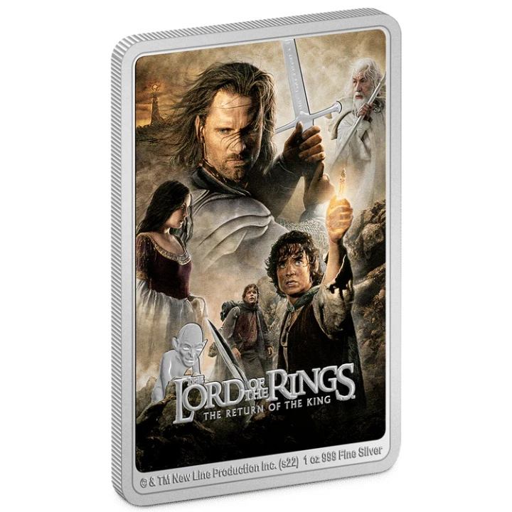 Il rovescio raffigura immagini colorate di Aragorn, Frodo, Sam, Arwen e Gollum. Sul rovescio è riportata la scritta “THE LORD OF THE RINGS: THE RETURN OF THE KING” e l'indicazione del peso e della purezza del metallo.