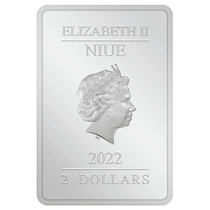 Il dritto della moneta d'argento raffigura il ritratto della regina Elisabetta II del Regno Unito, disegnato da Ian Rank-Broadley, la scritta “NIUE” insieme all'indicazione del valore nominale e dell'anno di conio.