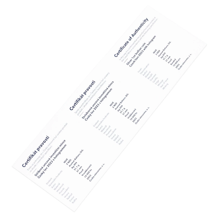 Niue: Leone ceco 1 oncia d'argento 2023 Proof con ologramma