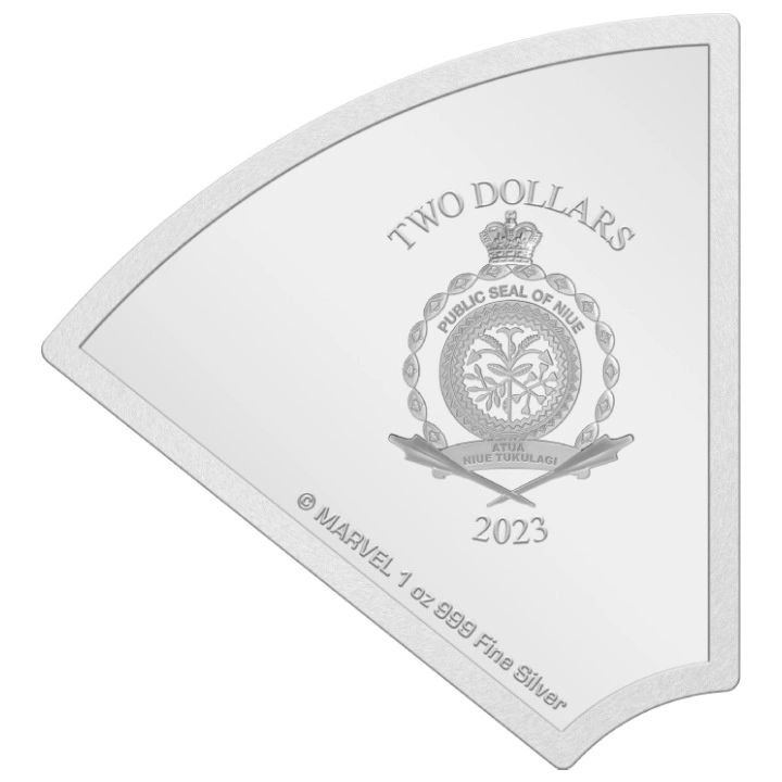 Il dritto della moneta d'argento raffigura lo stemma di Niue insieme alle informazioni sul valore nominale, l'anno di conio, il peso e la purezza del metallo.