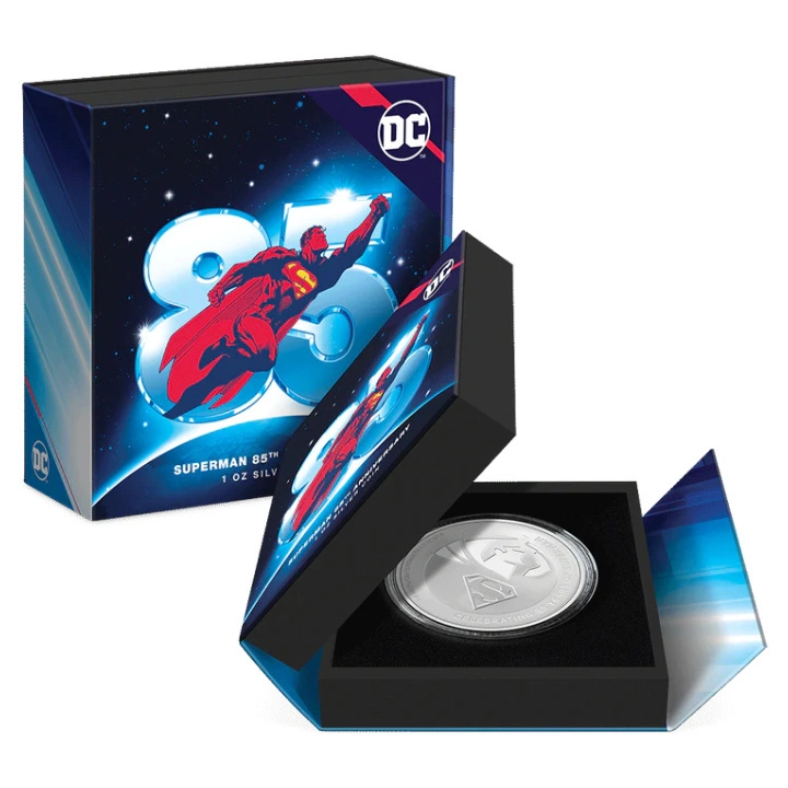 Sul rovescio è raffigurato il personaggio iconico del supereroe Superman, con la scritta “CELEBRATING 85 YEARS OF SUPERMAN”. Inoltre, sul rovescio sono riportate informazioni sul peso e sulla purezza dell'argento.