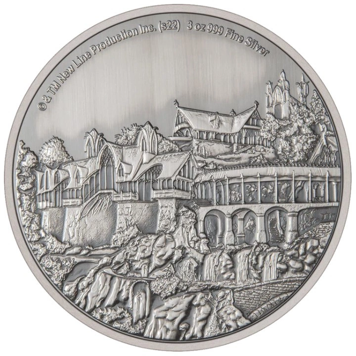 Il rovescio raffigura gli edifici di Rivendell. Sul rovescio sono riportate informazioni sul peso e sulla purezza del metallo.