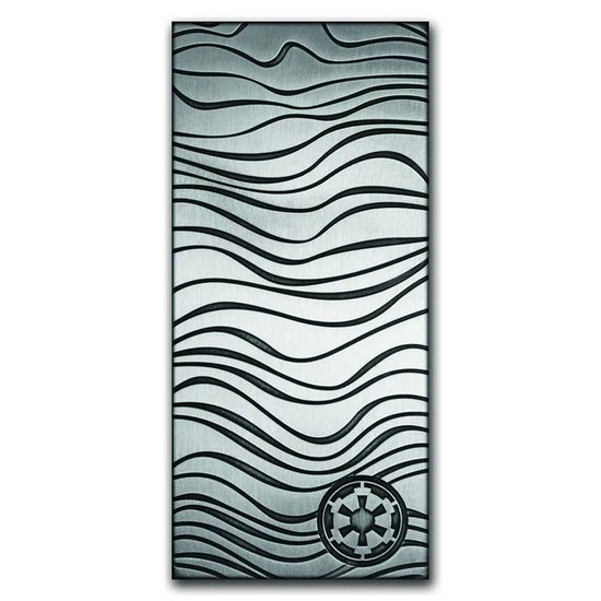 Awers srebrnej sztabkomonety zawiera herb Niue wraz z wartością nominalną, rokiem emisji, wagą, czystością i oficjalnymi prawami autorskimi Lucasfilm w celu dalszego uwierzytelnienia.
