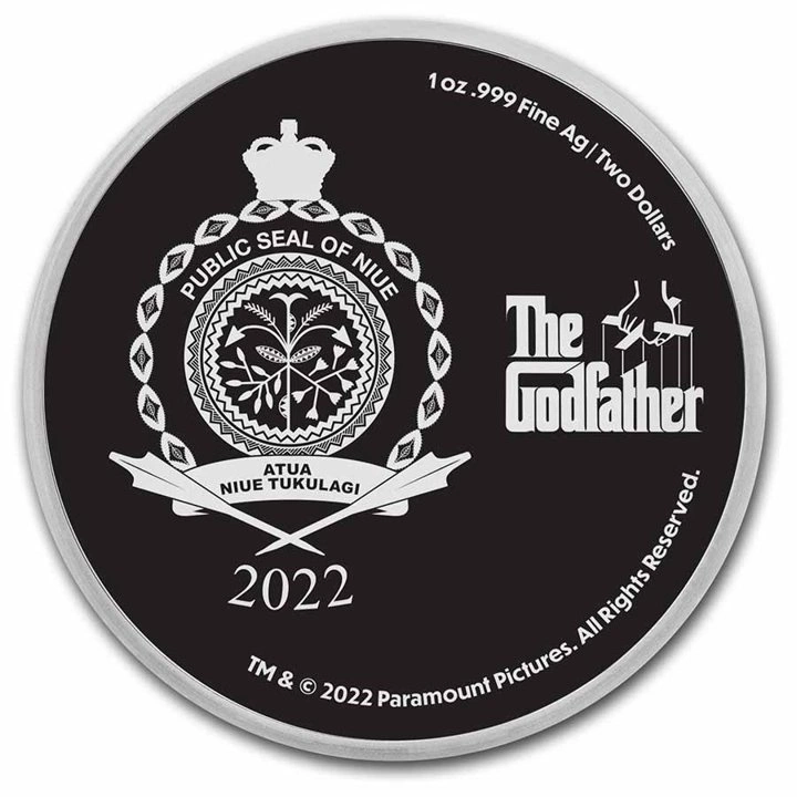 Il dritto raffigura lo stemma di Niue (Public Seal of Niue) e la scritta “THE GODFATHER”. Sul dritto sono riportate anche le informazioni relative all'anno di conio, al peso, al valore nominale e alla purezza del metallo.
