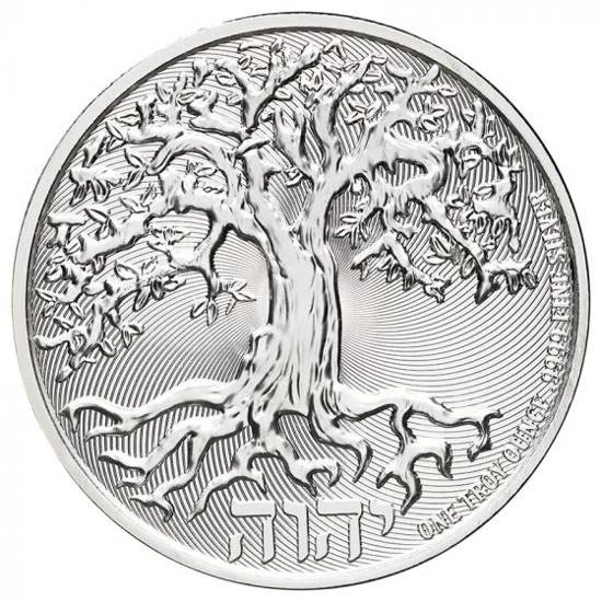 Il rovescio raffigura l'Albero della Vita e l'originale simbolo ebraico di Yahweh. Sul rovescio sono riportate anche informazioni sul peso e sulla purezza del metallo.