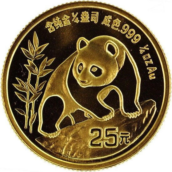 Inwestycyjna moneta z wizerunkiem Chińskiej Pandy to okaz wykonany ze złota o wadze 1/4 uncji oraz próbie kruszcu 999. Debiut kolekcji "Chińska Panda" odbył się w roku 1982 i od tamtej pory produkcja tego niezwykłego produktu trwa nieprzerwanie, aż do dziś. Chińska Panda jest prawnym środkiem płatniczym uznanym przez Ludowy Bank Chin i posiada rządową gwarancję wagi i czystości kruszcu.