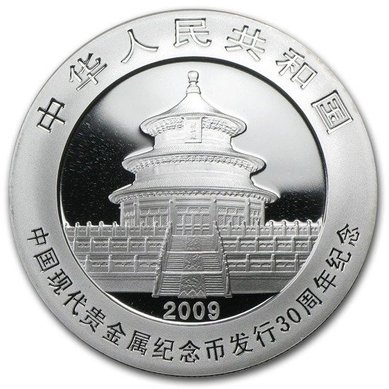 Panda cinese 30° anniversario 1 oncia d'argento 2009