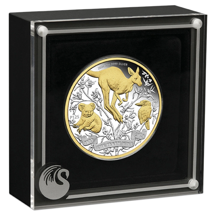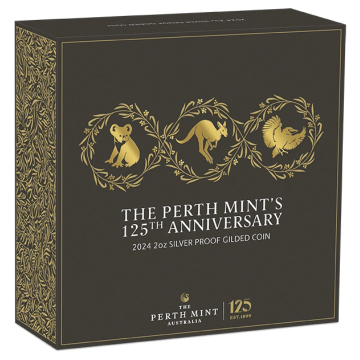 Perth Mint 125° anniversario della fondazione placcato in oro 2 once d'argento 2024 Proof