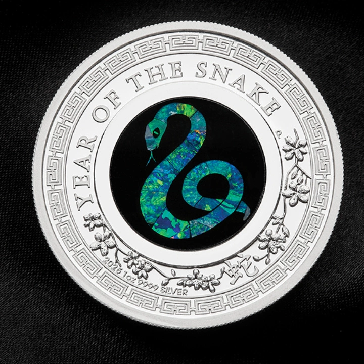 Il rovescio raffigura un serpente cinese realizzato in opale. Sul rovescio sono presenti anche il carattere cinese “serpente”, la scritta “YEAR OF THE SNAKE” e la lettera “P”, che è il marchio della zecca The Perth Mint, nonché informazioni sul titolo del metallo, il peso e l'anno di conio.