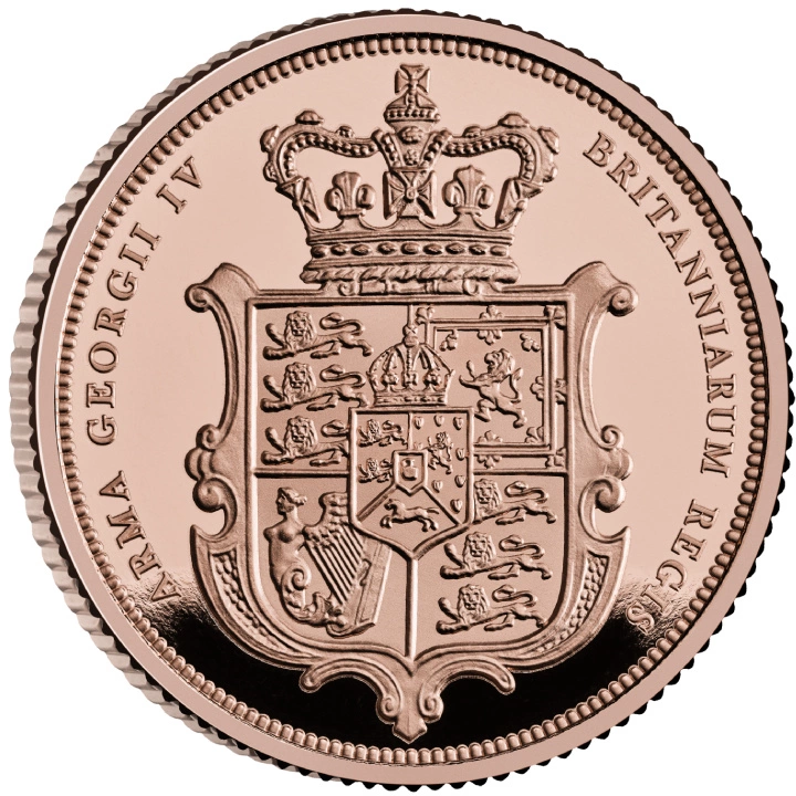 I dorsi raffigurano il disegno dello scudo Royal Arms di Jean Baptiste Merlen. Nella parte inferiore della moneta d'oro è riportata anche la data di emissione. .