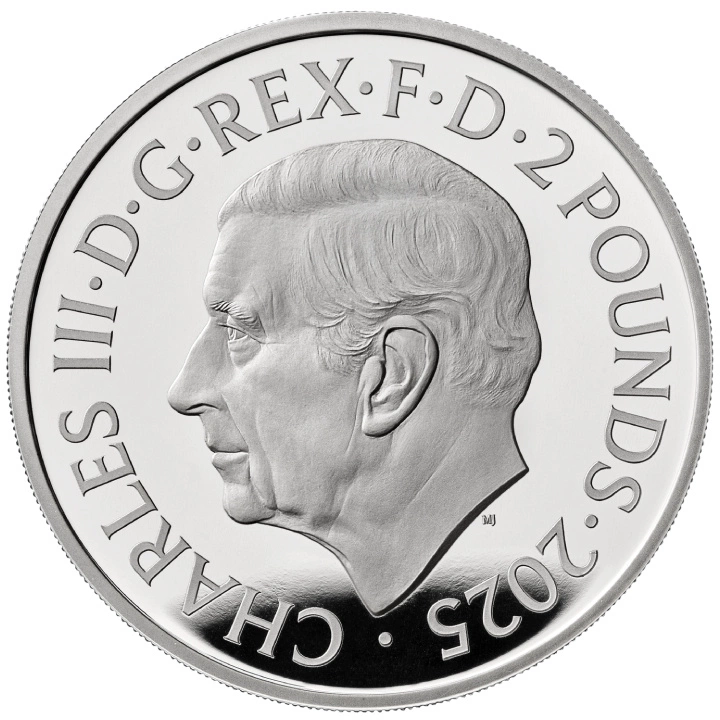 Il dritto della moneta è decorato con l'effigie del re del Regno Unito Carlo III, il valore nominale e l'anno, secondo il disegno di Martin Jennings.