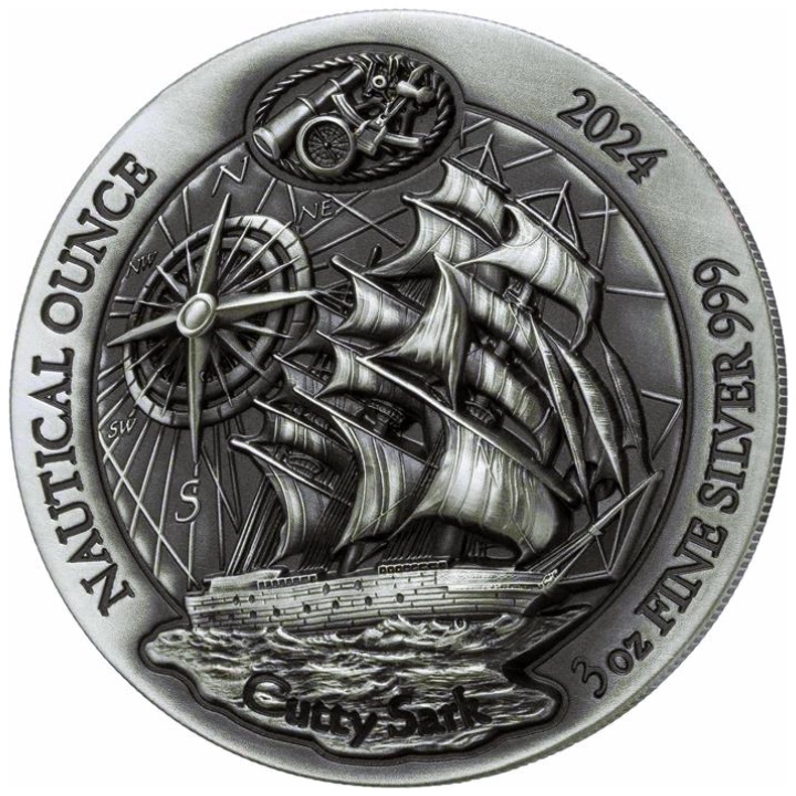 Ruanda: Oncia nautica - Cutty Sark 3 once d'argento 2024 Finitura anticata