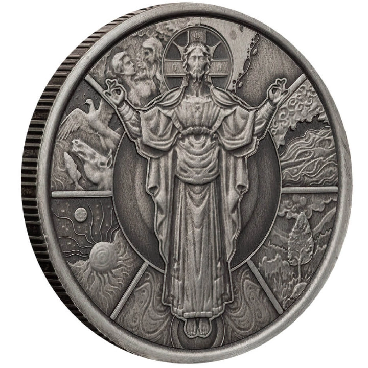 La moneta Samoa: The Creator 1/2 oncia d'argento 2024 Antiqued Coin è un prodotto unico, che ha un significato particolare per i cattolici e i cristiani. Il valore fa parte della collezione The Jesus Collection.