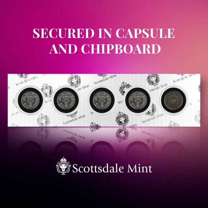 La moneta è stata coniata in argento puro di altissima purezza Ag.999, con un peso di 1/2 oncia troy e un diametro di 27 mm. La finitura in stile antico (antiqued) conferisce alla moneta un carattere unico: la superficie è volutamente invecchiata, con accenti più scuri e opachi che mettono in risalto i dettagli del rilievo. Questo effetto è ottenuto attraverso un processo di ossidazione o l'applicazione di speciali patine, che conferiscono alla moneta un aspetto ispirato alle antiche tecniche artigianali. Il risultato è una moneta con una profondità visiva e un netto contrasto tra i rilievi e lo sfondo, che ne sottolinea la dimensione artistica e l'estetica. La moneta d'argento è stata prodotta dalla rinomata zecca Scottsdale Mint in una tiratura limitata di soli 5.000 esemplari. Il prodotto ha lo status di mezzo di pagamento legale valido nel territorio di Samoa.