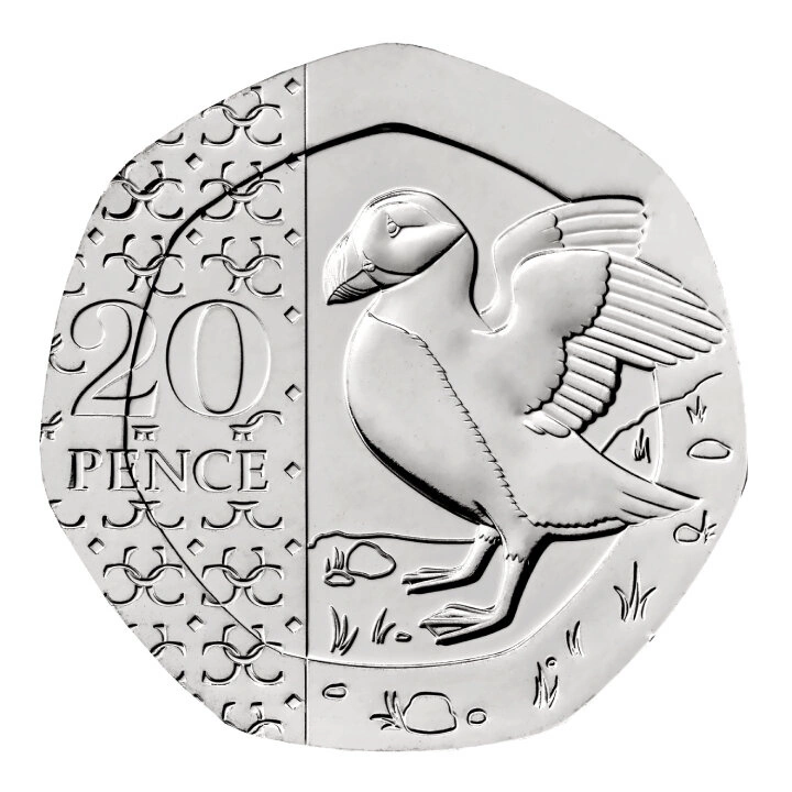 Moneta da 20 pence Brilliant Uncirculated, in lega di rame-nichel, del peso di 5 grammi e del diametro di 21,4 mm.